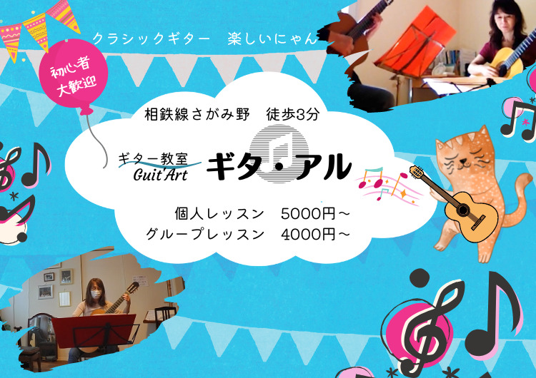 ギタ・アル講師の安原です。小原聖子先生のもとで修業してきました。歌心のある演奏を心がけています。ギターのある暮らし、楽しいですよ。やってみませんか?
